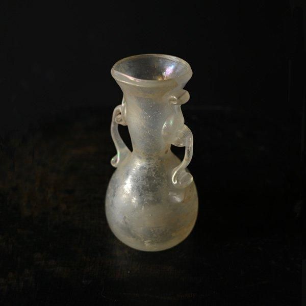 ローマングラスのように表面が虹色に輝き、不思議な魅力があるガラス瓶。
