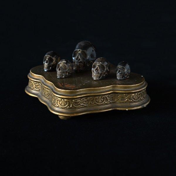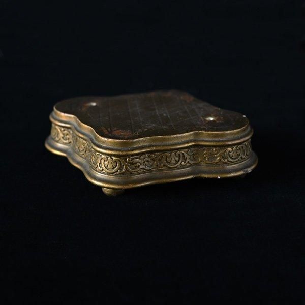 全体を上品なゴールド色が包み、丸い脚が4つぽちっと付いた可愛い飾り台です。