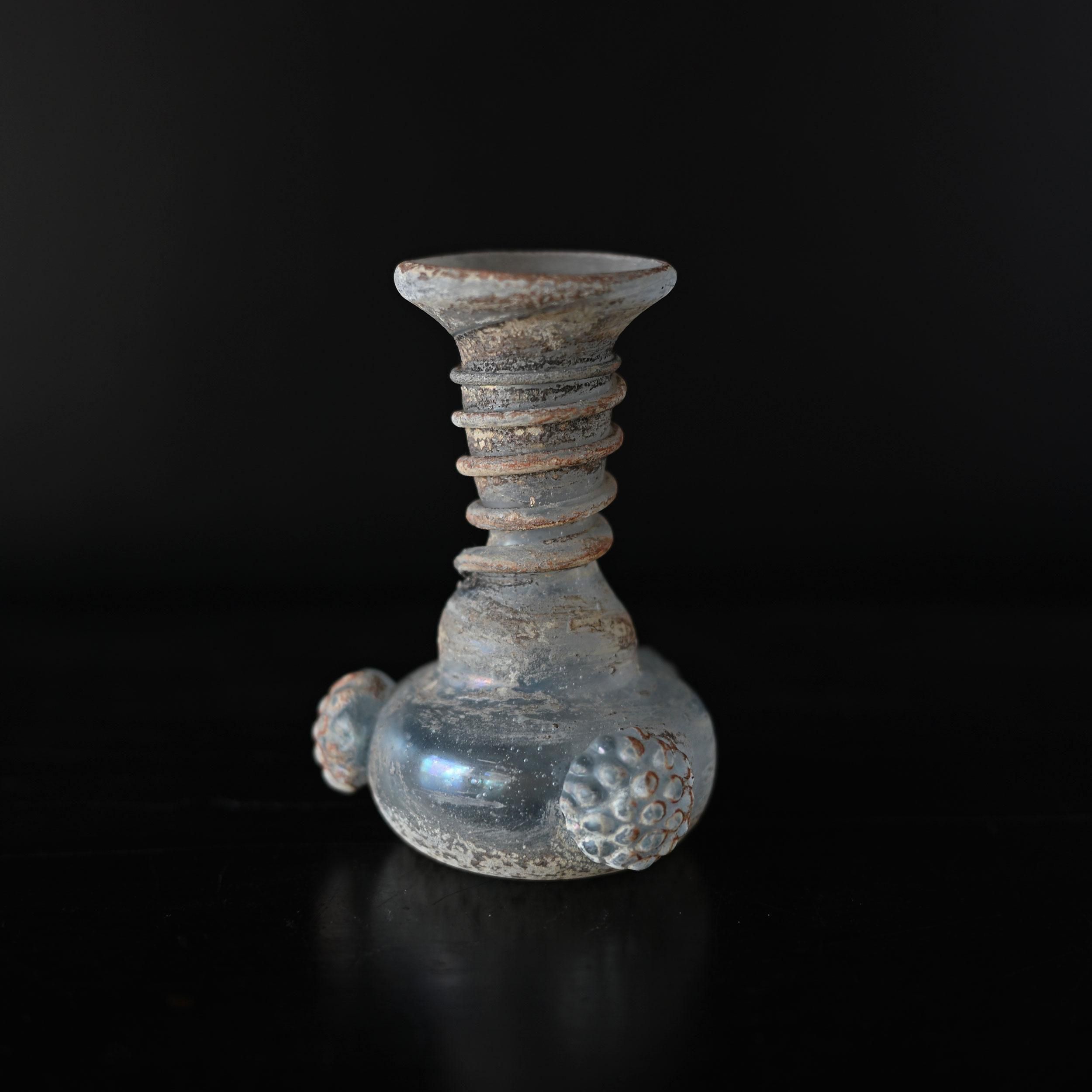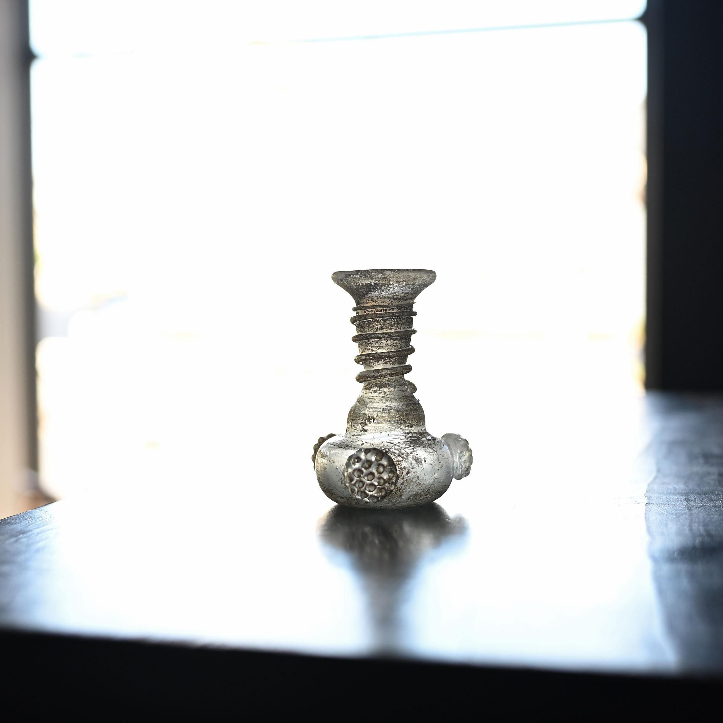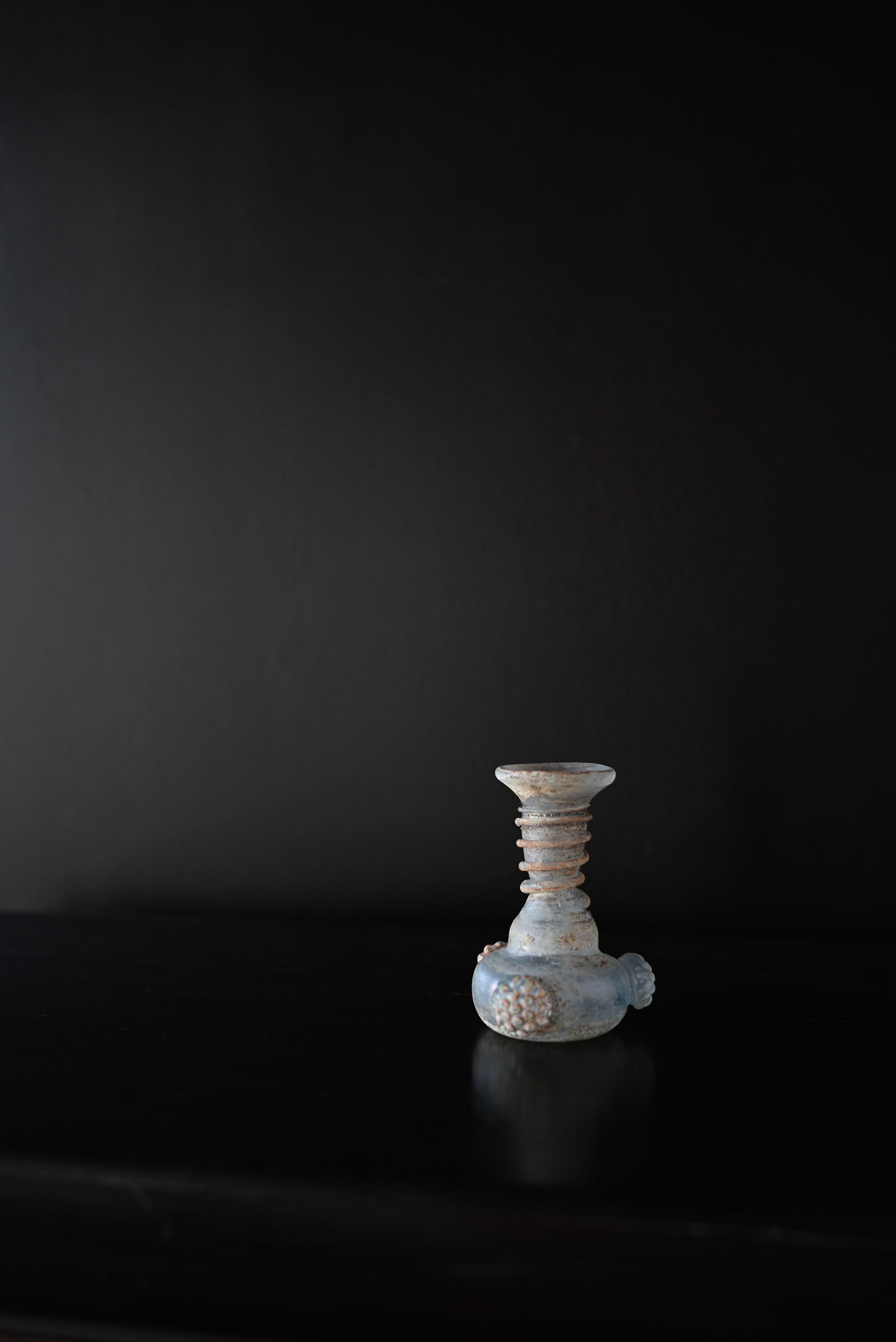 まるで古代ローマや中世イスラム圏の吹きガラスを思わせる佇まいで、時代を超えた神秘的な雰囲気を纏っています。