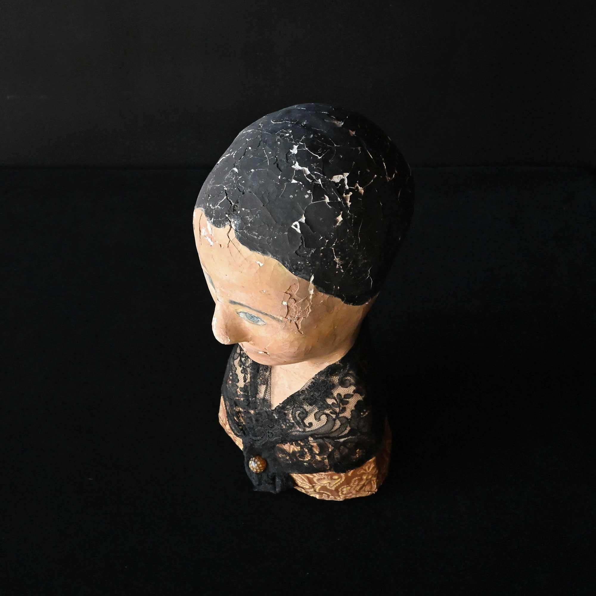 どこか静かな存在感を放つ、19世紀後半につくられた紙製(パピエマシェ)の帽子用のマロット。