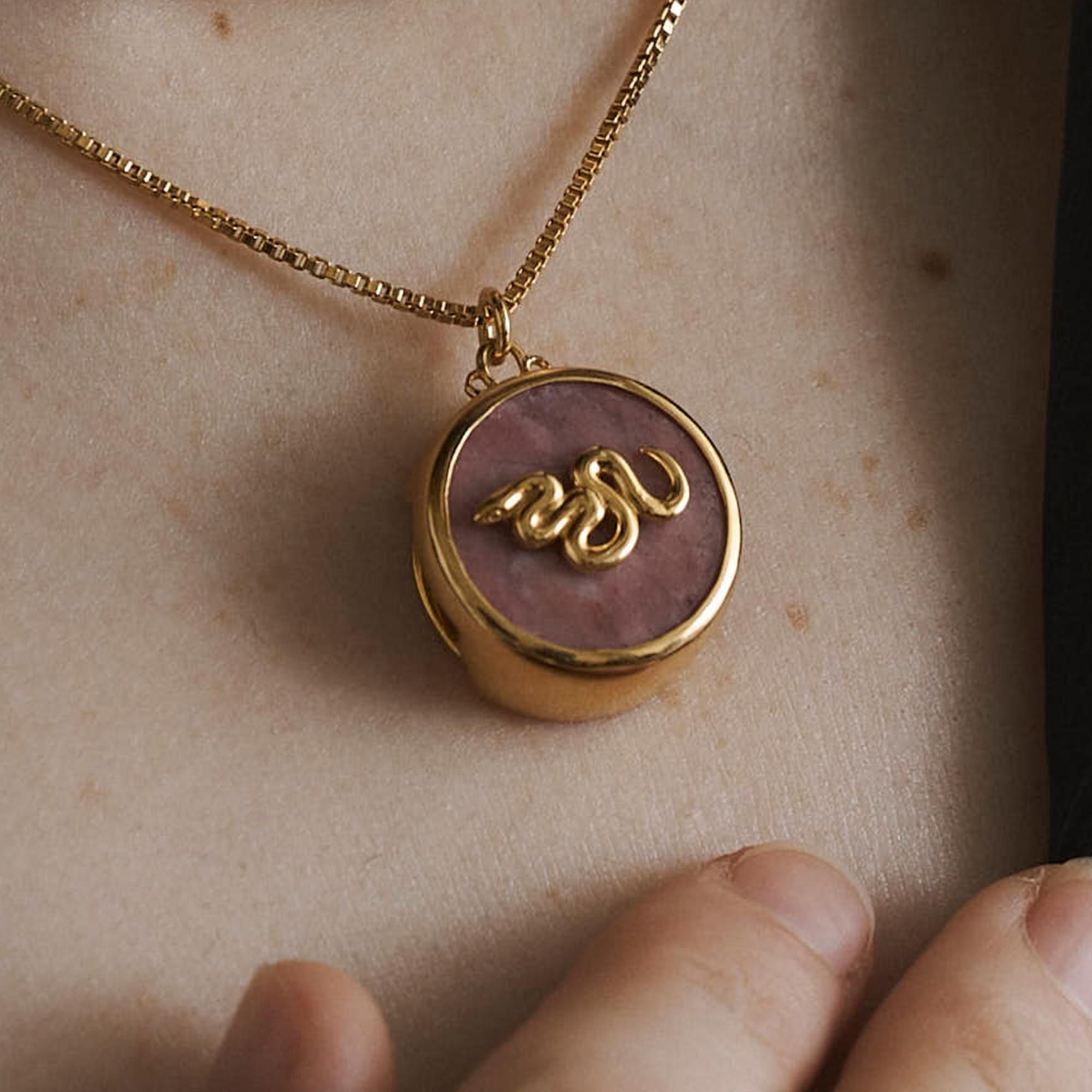 蛇を回して薬を忍ばせる 「再生の儀式」を秘めたネックレス